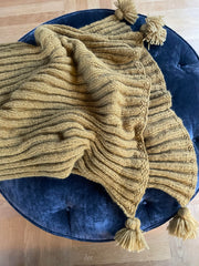 På billedet ser du tæppet strikket i BABY ALPACA MERINOULD i farven KARRYGUL.