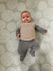 In the picture you see Alba (3 months) in "Baby Vest A" knitted in BABY ALPACA & PIMA COTTON in the color LIGHT BEIGE. The sweater is knitted in size "0-6 months."
