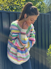 In the picture you see Sara in "All Fantasy" knitted in the shade MULTI SPRAGLET. The sweater is knitted in size "M".
