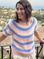 In the picture you see Sara in "Beginner Ocean No2" knitted in SURI ALPACA & MERINO WOOL in the colors SNOW WHITE and SKY BLUE. The sweater is knitted in size "S"