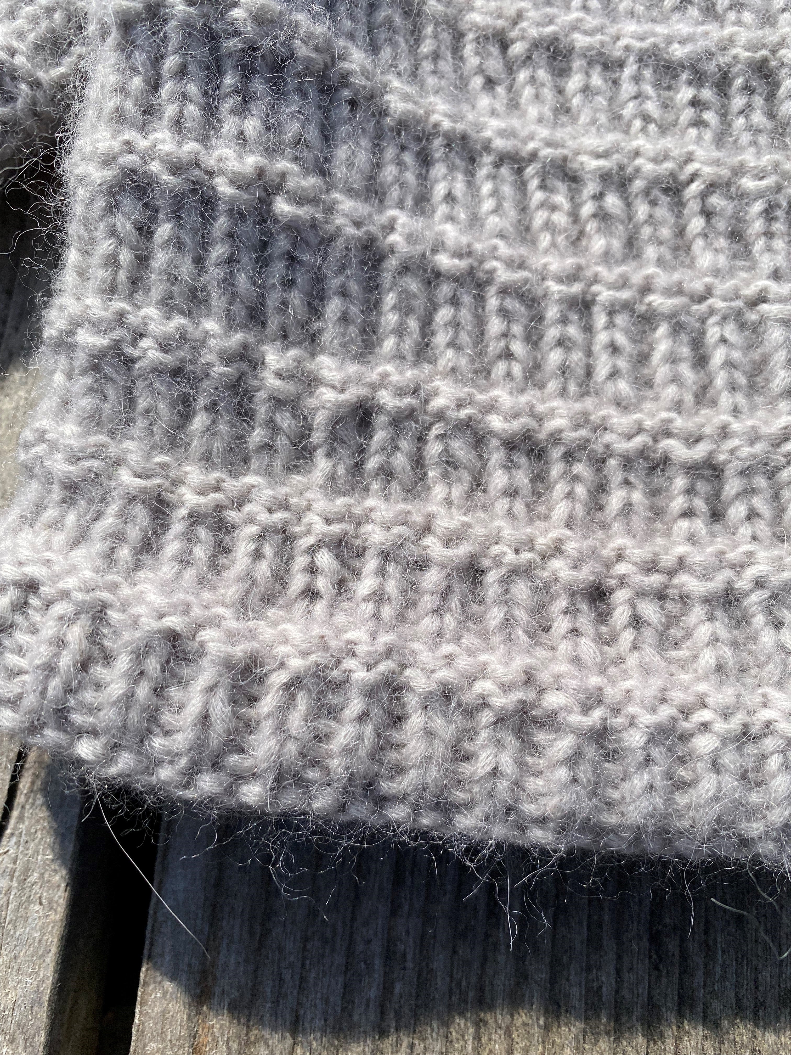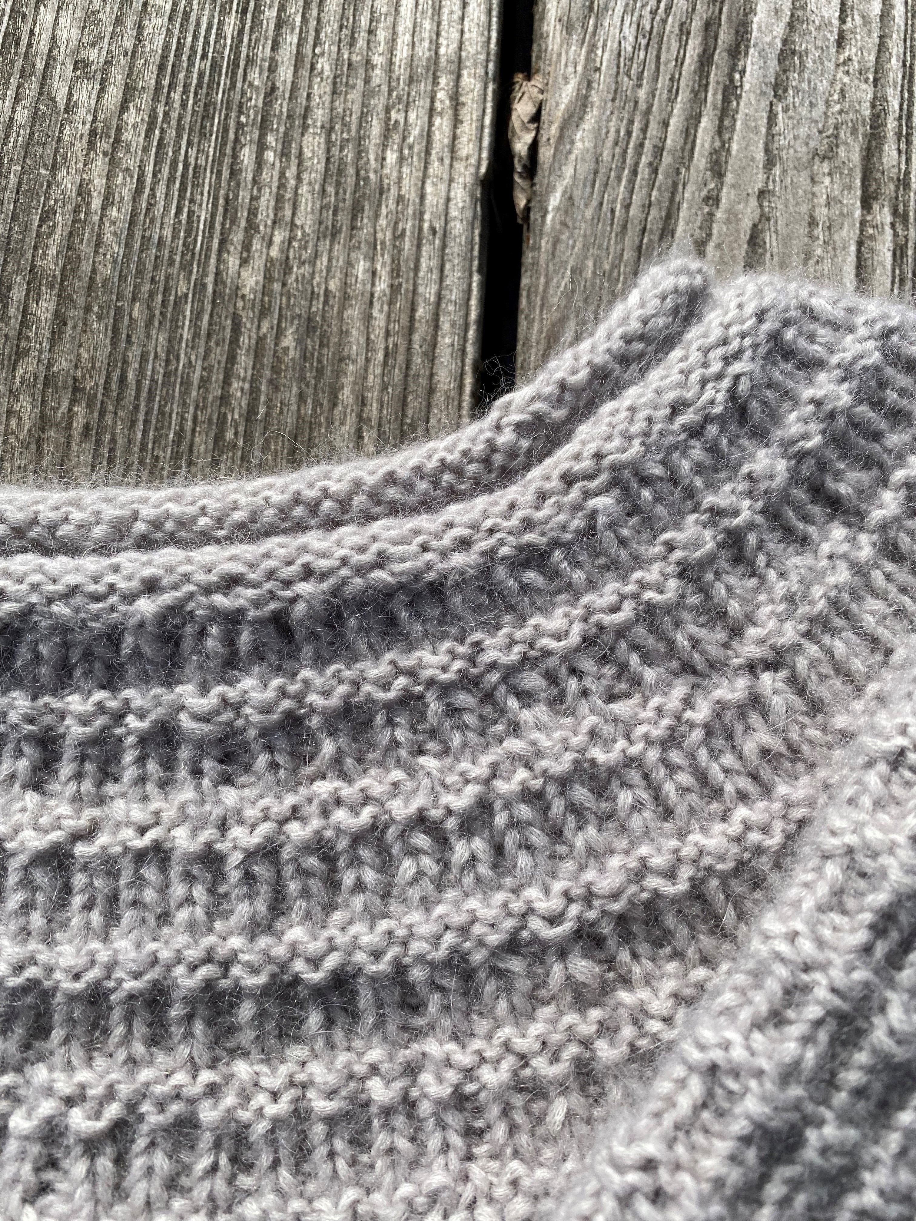 Junior A: The sweater is knitted top down on circular needles in a pattern consisting of knit stitches and purl stitches.