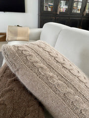 På billedet ser du "Pude B" strikket i BABY ALPACA MERINOULD i farven BEIGE.